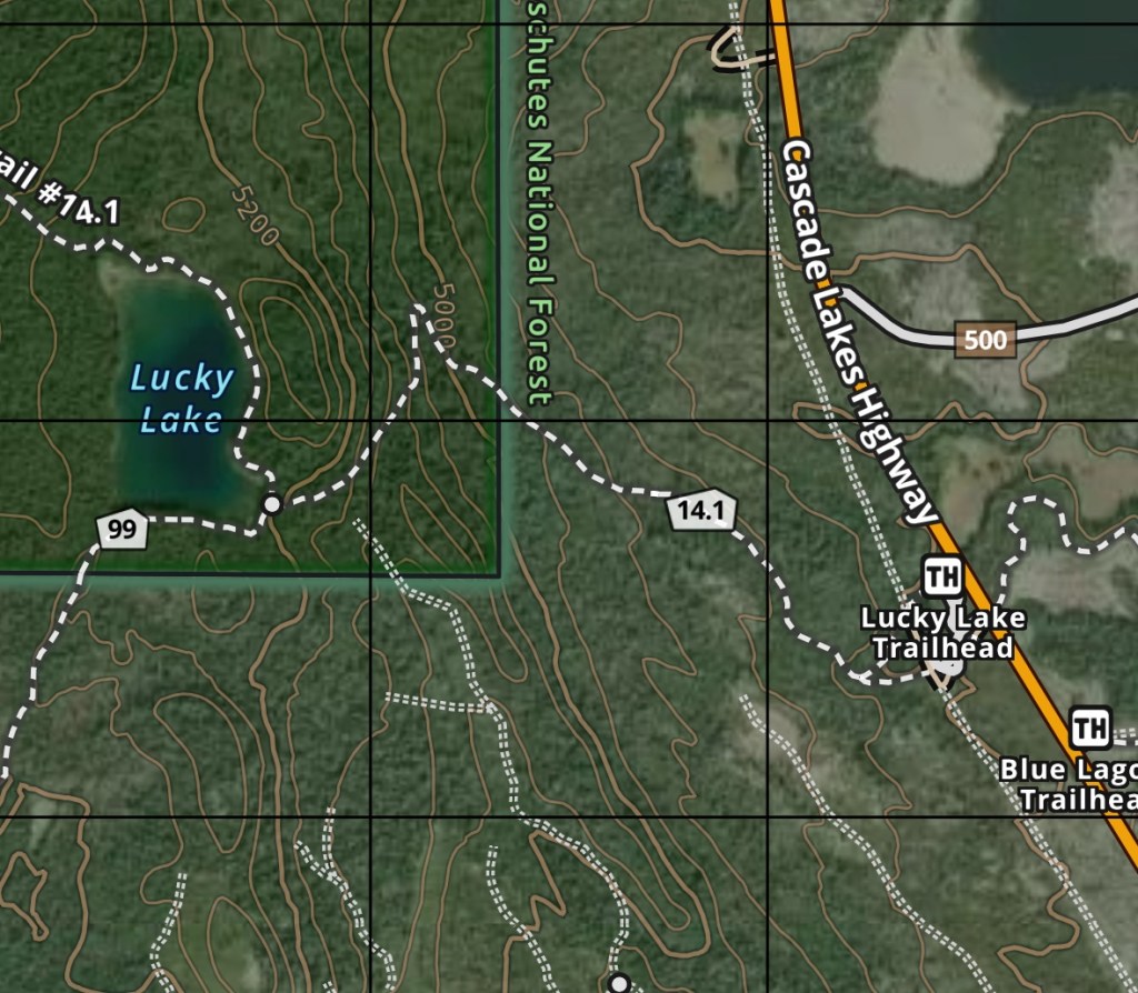Lucky Lake Trailhead provides access to the Three Sisters Wilderness , Metolius-Windigo Trail (#99) and Senoj Lake Trail (#14.1).
