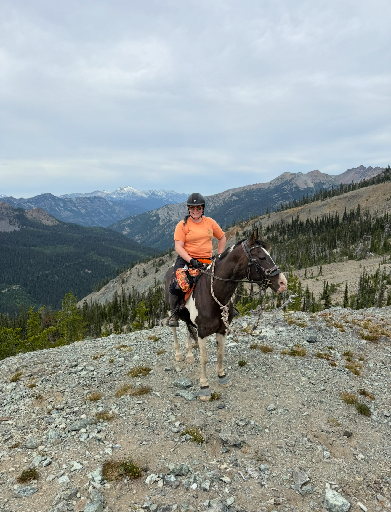 Trail Info: Take the North Fork Teanaway Trail #1358 (it is unsigned so don’t expect it to be labeled) and follow it while it parallels the road for 1.3 miles. You will intersect with the road at Esmeralda Basin Trailhead. Continue on the trail. From here the trail will climb gradually through stunning meadows and can enjoy views of the basin along the way. While most of the trail is easy and the climb is a long mild grade – there are a couple of narrow sections. If you are afraid of heights you may want to hike with your horse those spots. After 2.2 miles you can decide to turn around or continue to climb out of the basin if you have an experienced horse. Continue 1 mile until the trail forks. Experienced horse and riders may go right towards Lake Ann Overlook. This trail is steep and rocky and should only be done by experienced pairs. To continue the loop, remain on the trail (#1358) and take the fork left, ride the switchbacks to the top of the pass for another 0.6 miles. When you’ve reached the top – enjoy neverending views of the Alpine Lakes Wilderness and the basin you just climbed up.