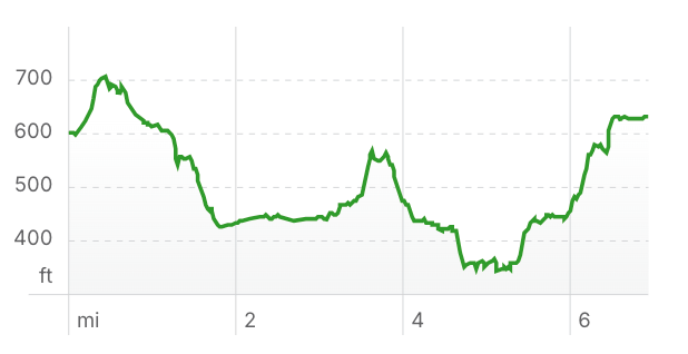 ↗ What does this mean? - Footing: The trails are very well maintained dirt trails with some gravel sections. Can be slippery on hills during wet weather. One longer rocky stretch on a hill.