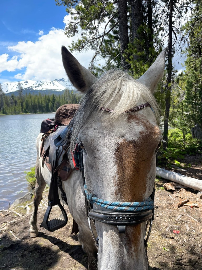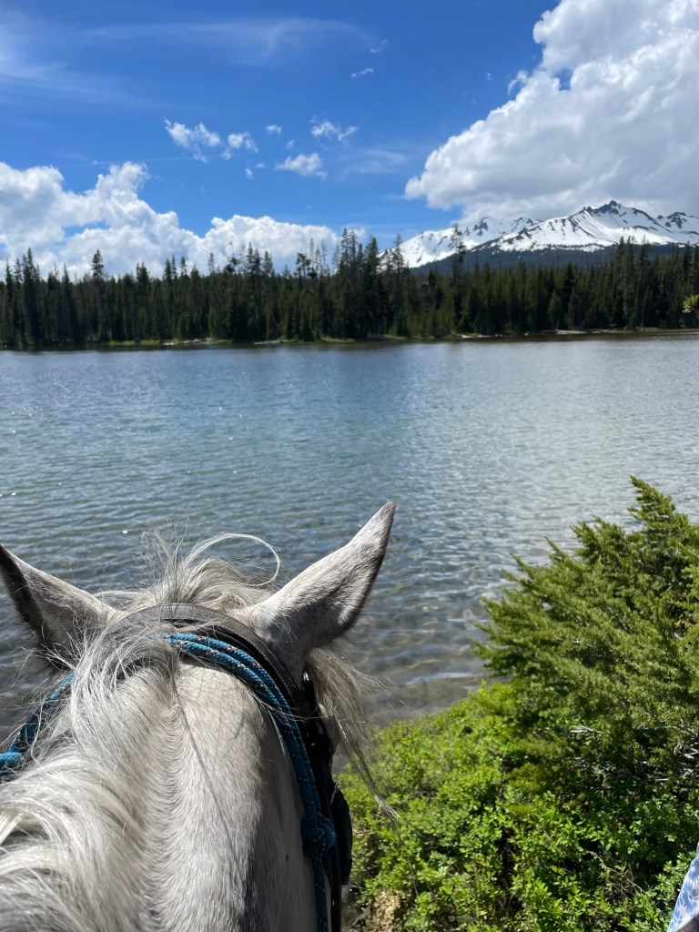 Whitefish Horse Camp in Central Oregon sits on the shore of Lake Cresent and provides access to the Diamond Peak Wilderness. The famed Metolius-Windigo Trail runs through camp, and many other trails offer treks to pristine lakes. Whether you like long mileage or shorter jaunts, this camp has scenery for any rider.