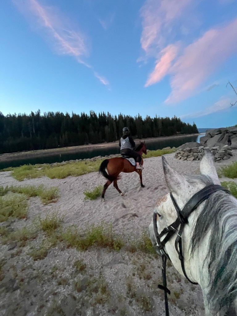 The lake is also shallow enough to ride to the island at sunset- however be careful on the shoreline if you ride towards the south to the inlet- quicksand exists and your horse will give you a quick exit.