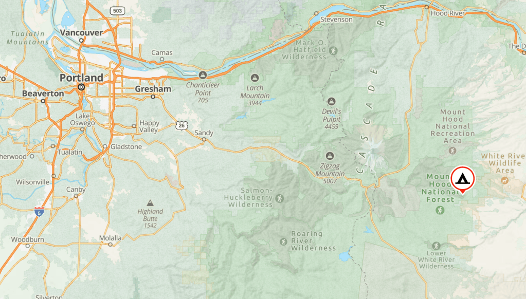 Gas Station: Wamic Market (if coming from the east) – 57016 Wamic Market Rd, Tygh Valley, OR 97063 or Chevron (if coming from the west) – 93770 US-26, Government Camp, OR 97028
