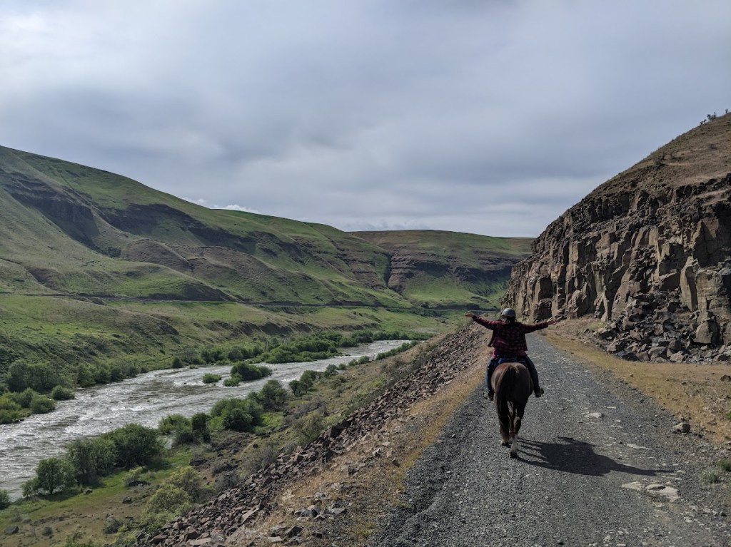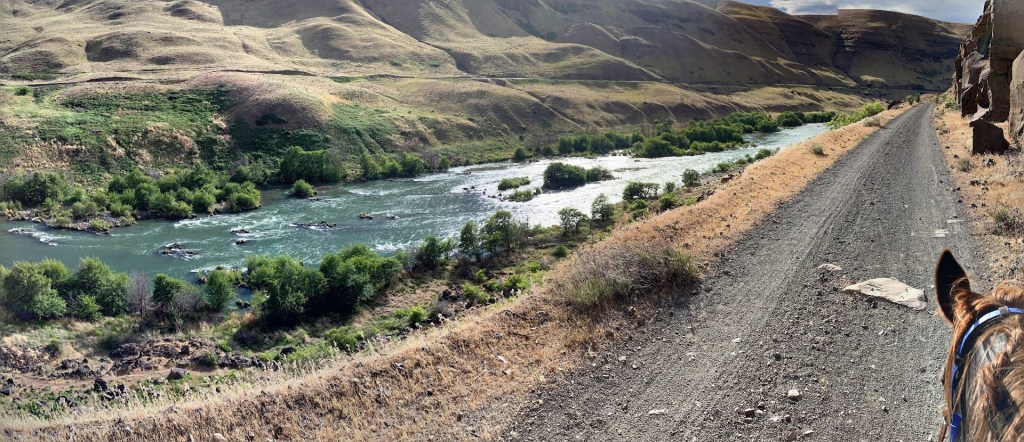 The Deschutes River State Recreation Area offers a 22-mile out and back ride along an old railbed trail for equestrians ending at Harris Ranch. Located east of Dalles, Oregon in the Columbia River Gorge- this is a great spring conditioning ride for endurance riders or anyone who wants an easy flat trail to explore. This park requires a reservation, so read the permit section carefully.