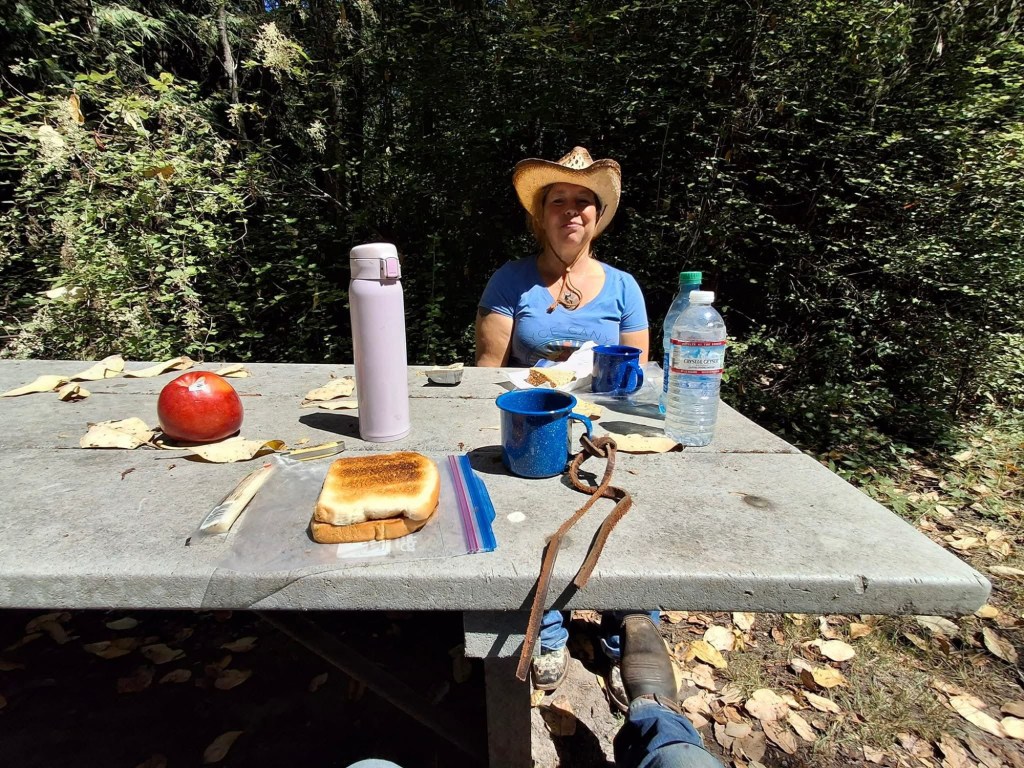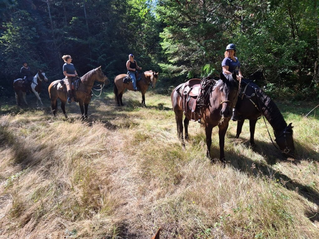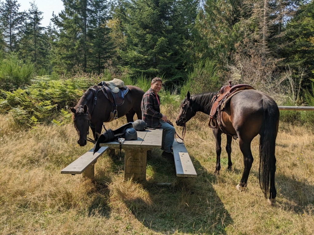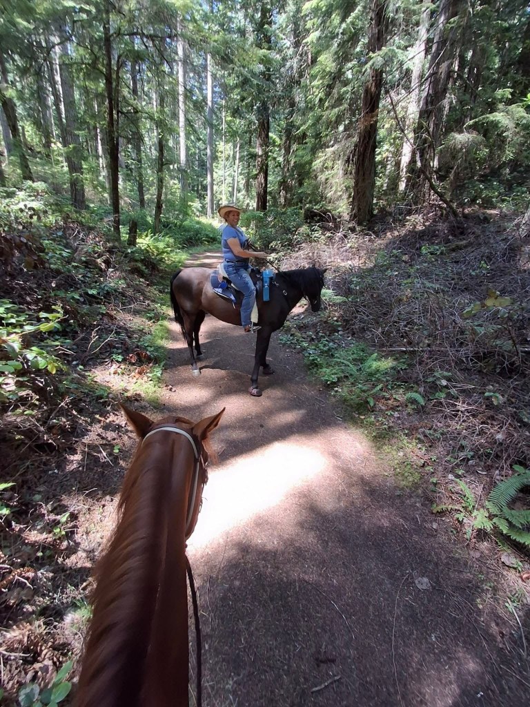 Facilities: Parking lot with dedicated trailer parking, composting toilet, mounting block, tie rails & picnic tables. Two picnic areas along the trail with hitching posts and picnic tables.