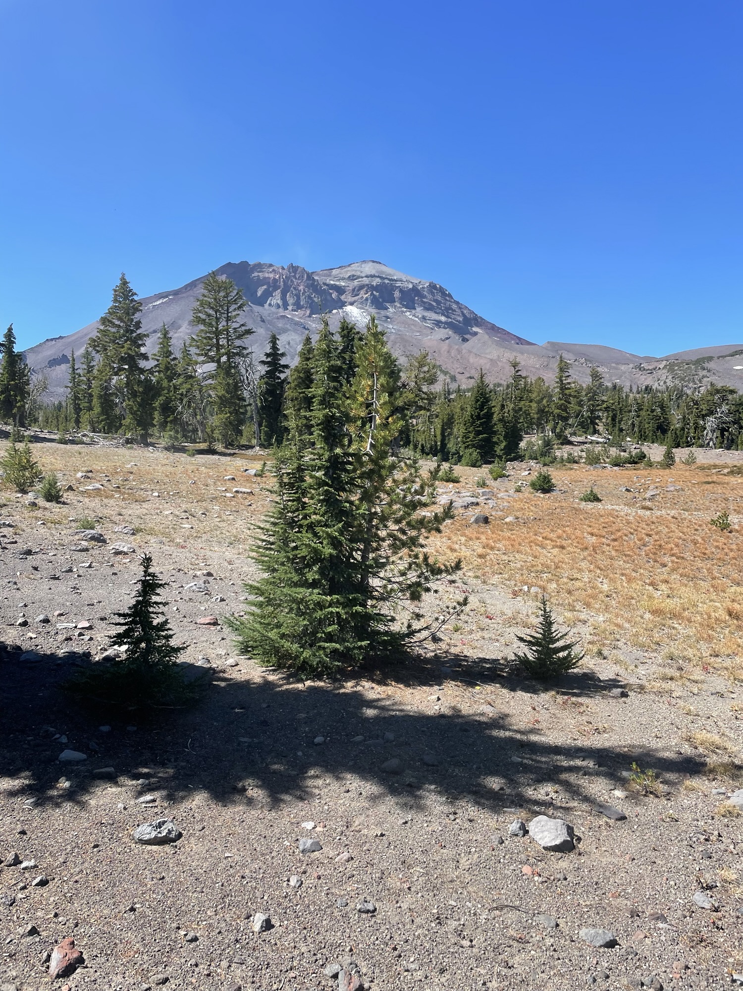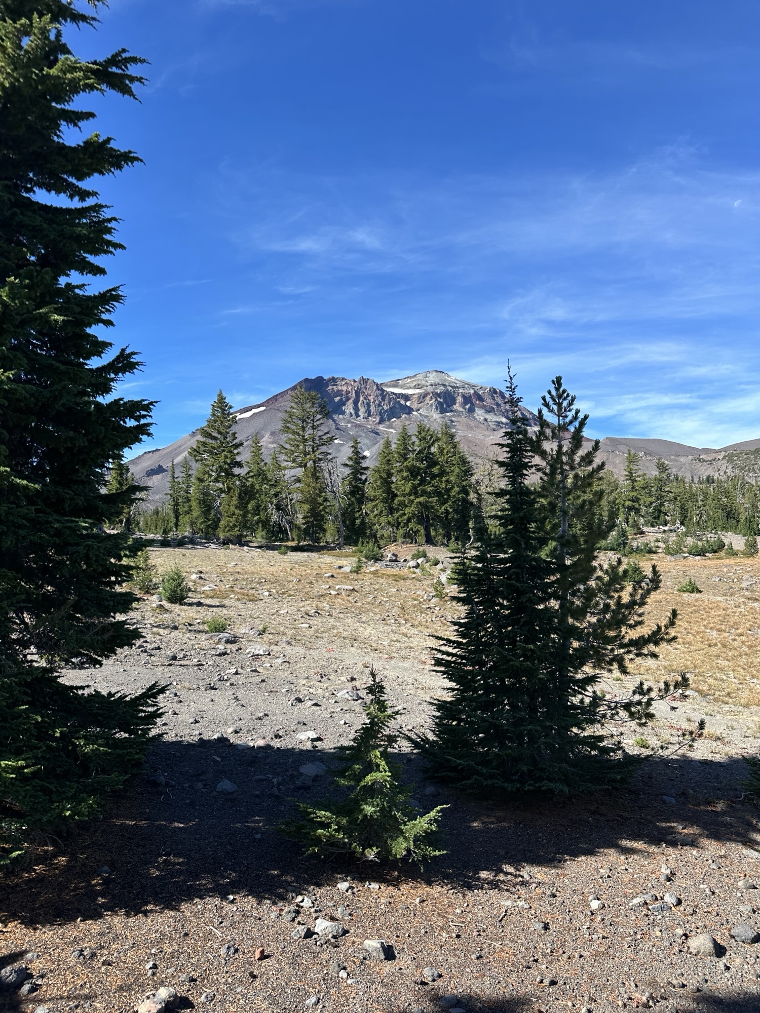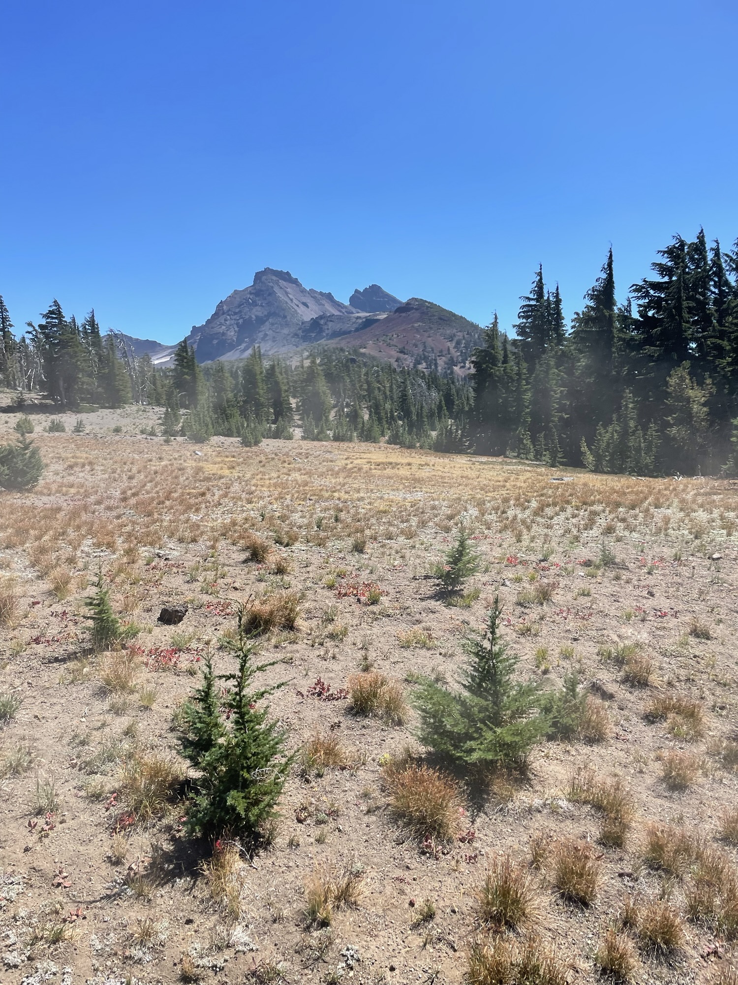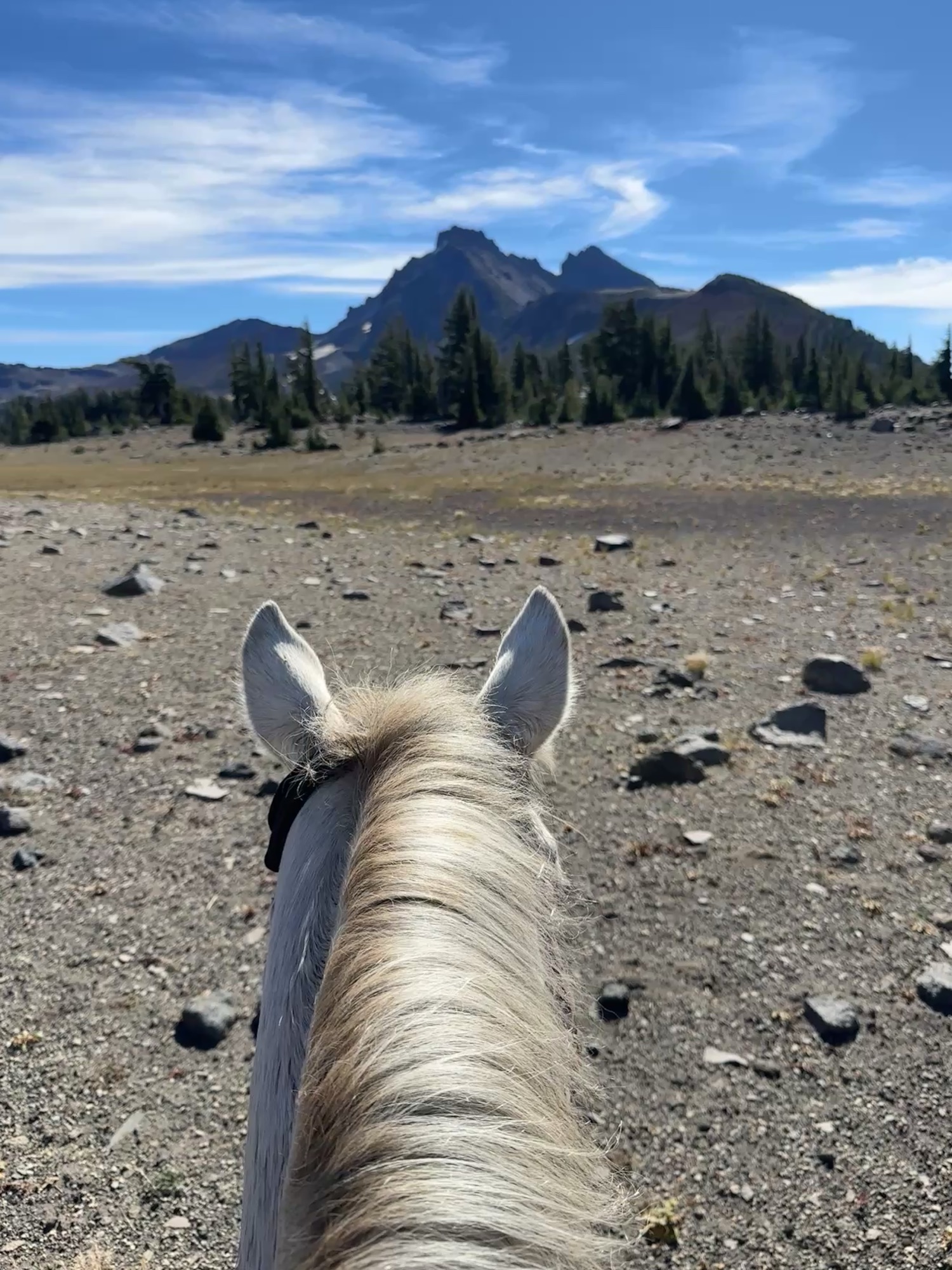This ride starts out of Three Creek Meadow Horse Camp. For those who have a willing and able horse for a long ride with big elevation gain, you only need a self-issued wilderness permit from this trailhead – no need for the pre-reserved Central Cascades Wilderness Permit. This ride goes through a burn for a bit, but it’s grown back enough to have pops of wildflowers to enjoy.
