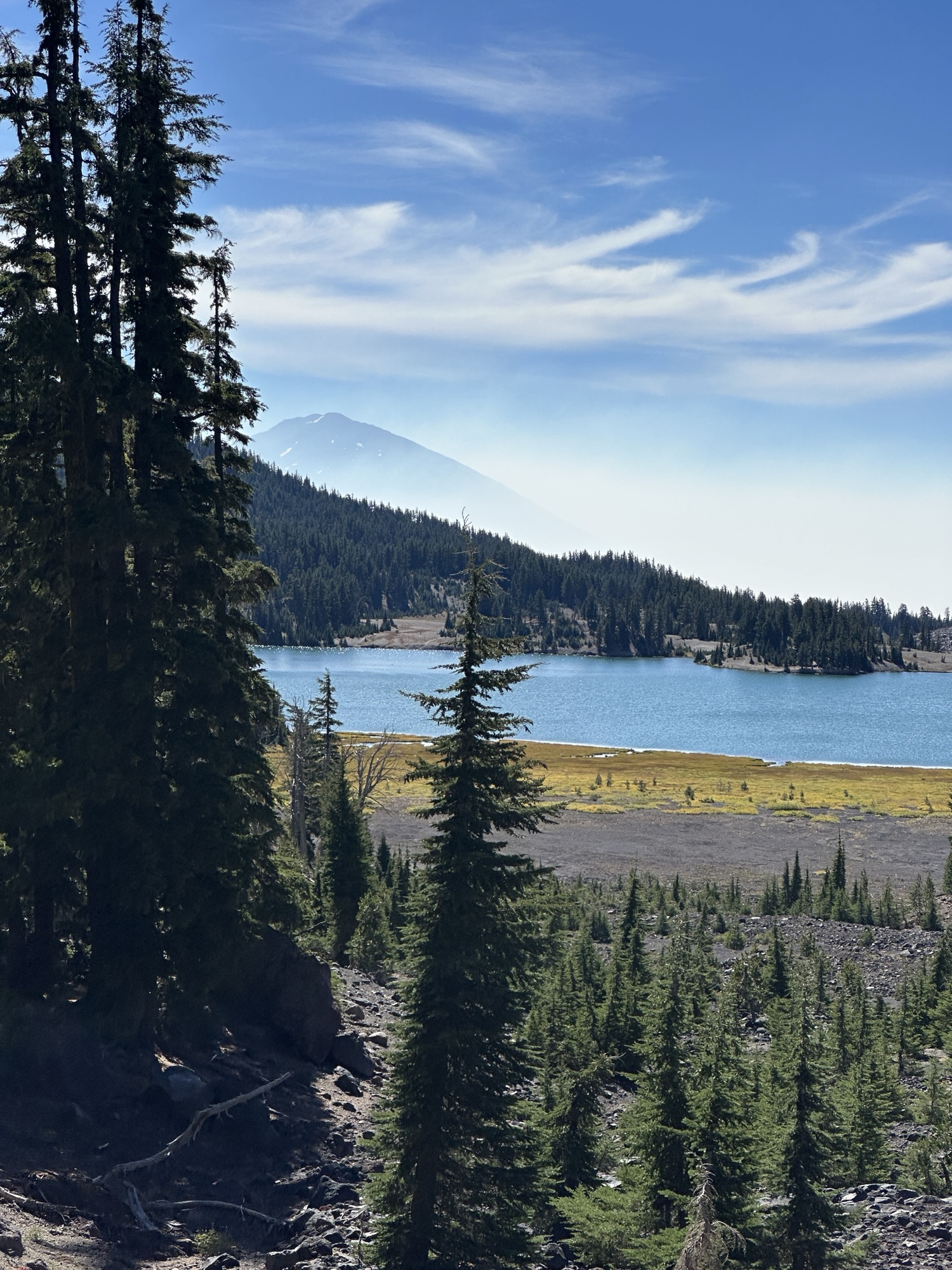 Trail Challenges: Short section of narrow steep sidehill on Park Meadow Trail. Very loose unstable side cliff on side of lake – suggest hiking it. Water crossings. Huge elevation gain.