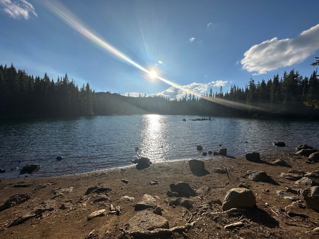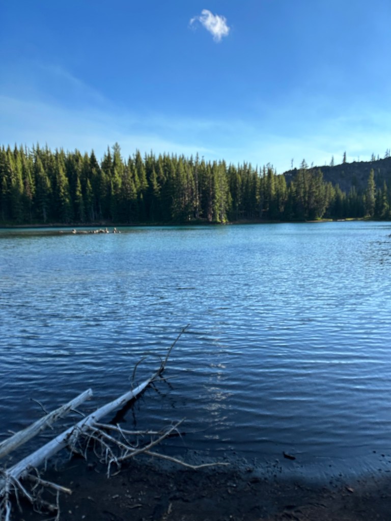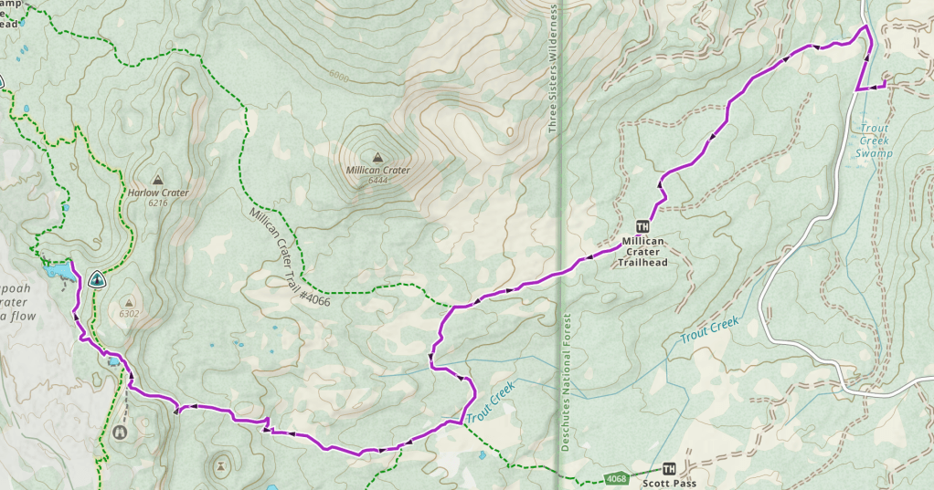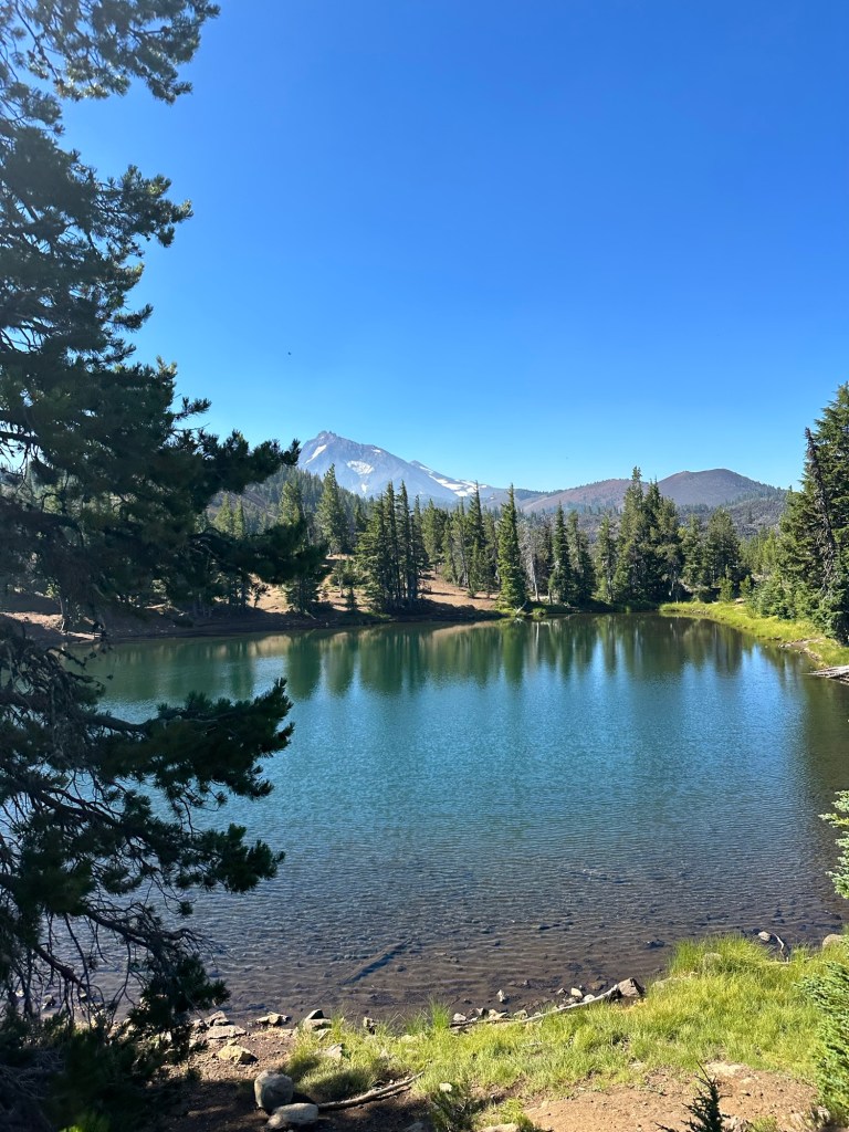 Trail Info: Leave camp and turn right towards the main road. Turn right again on Forest Road 1018 for 0.3 miles. Turn left on Forest Road 1024 and follow this for 1.9 miles to Millican Crater Trailhead. Continue on Millican Crater Trailhead for 0.9 miles. At the first junction turn left on Trout Creek Tie Trail and follow for 0.8 miles. At the next junction, turn right on Scott Pass Trail and continue on this for 2.3 miles. At the Pacific Crest Trail Junction, ride PCT North and you will arrive at the first lake within about 0.1 miles. Continue along the PCT for another 0.1 miles to the next junction. Veer left onto North Matthieu Lake Trail and follow for 0.6 miles until you arrive at North Matthieu Lake. Return the way you can or consider one of the alternate lollipop loop routes listed in the GPX tracks below.