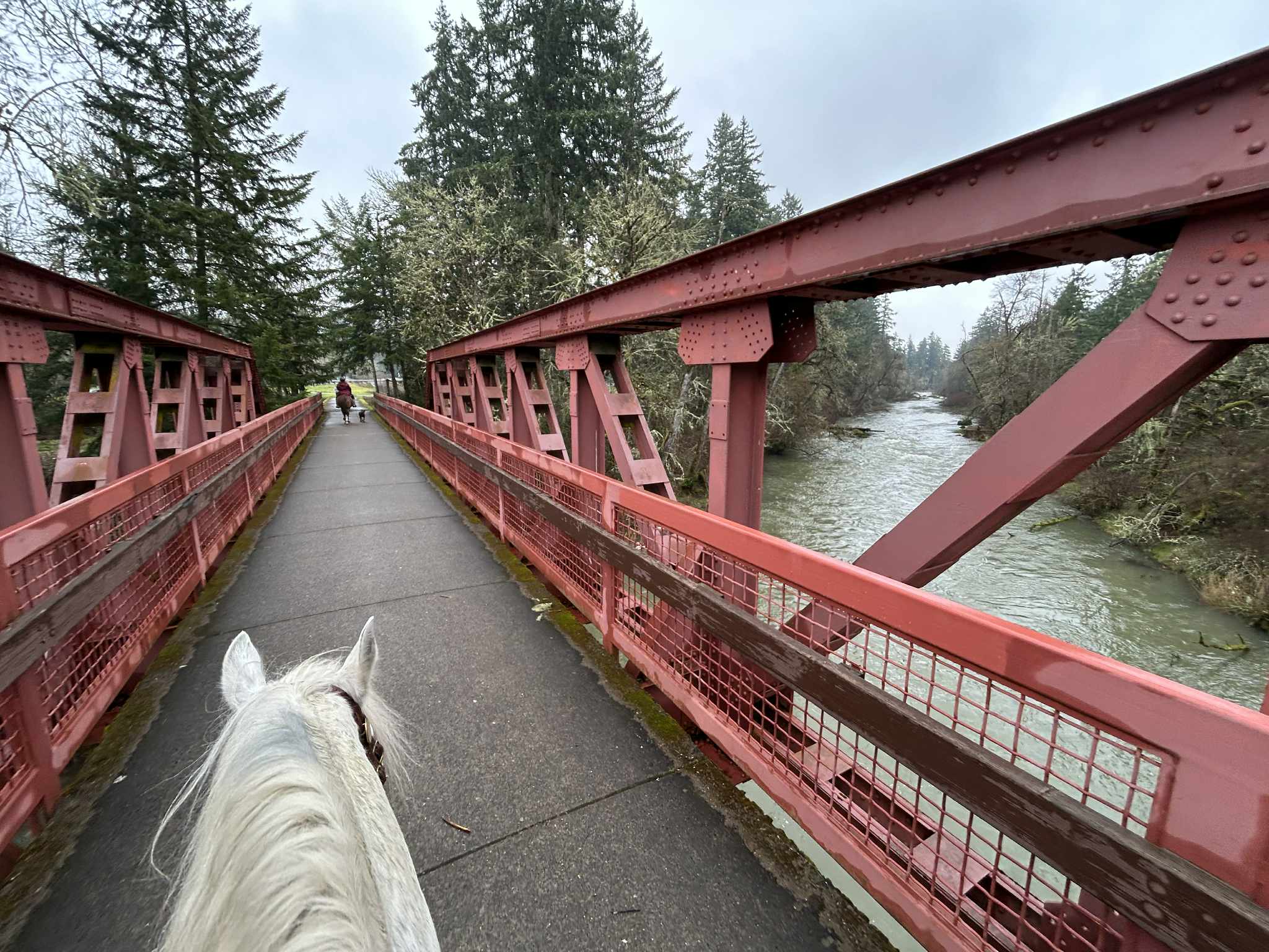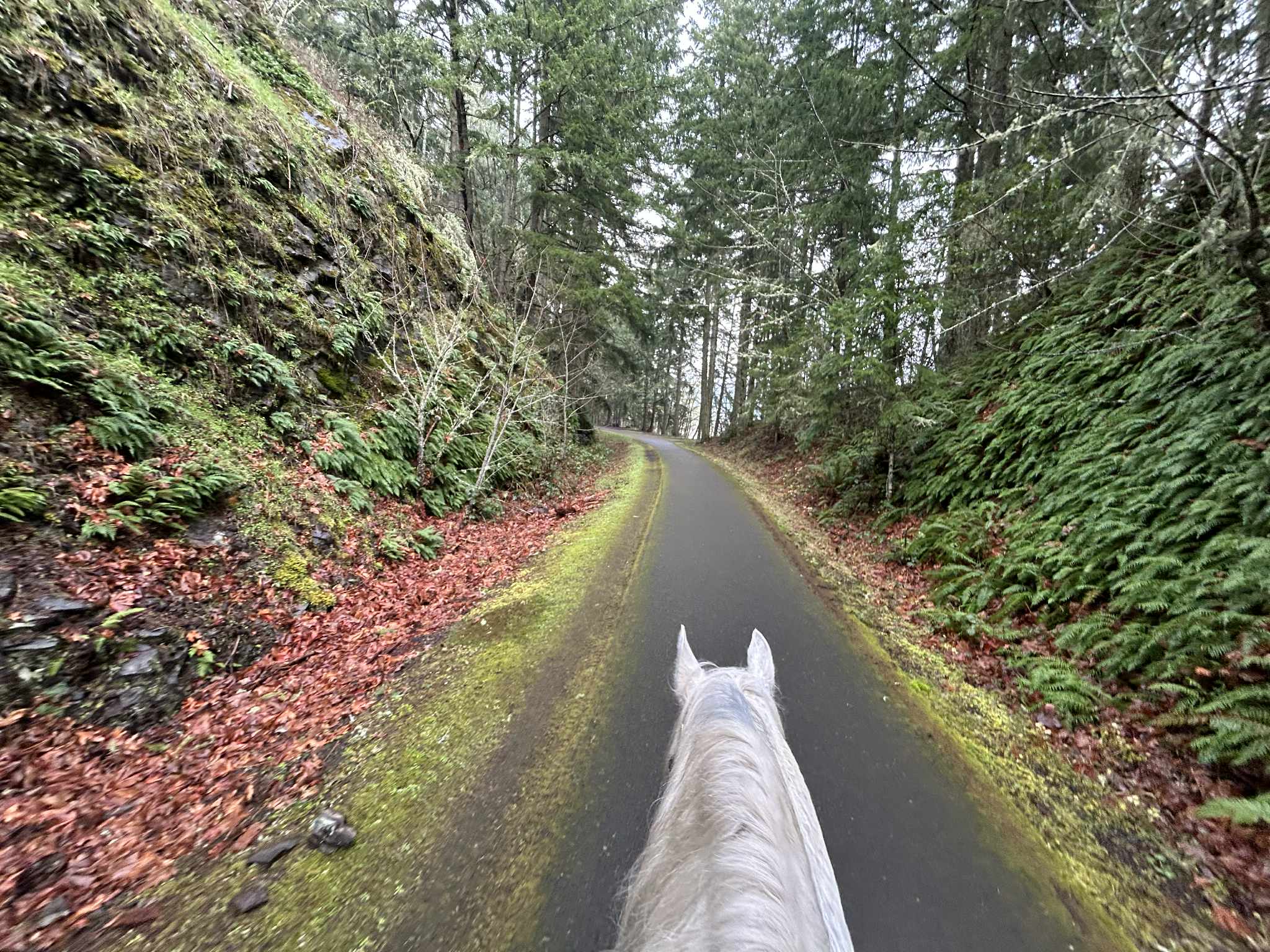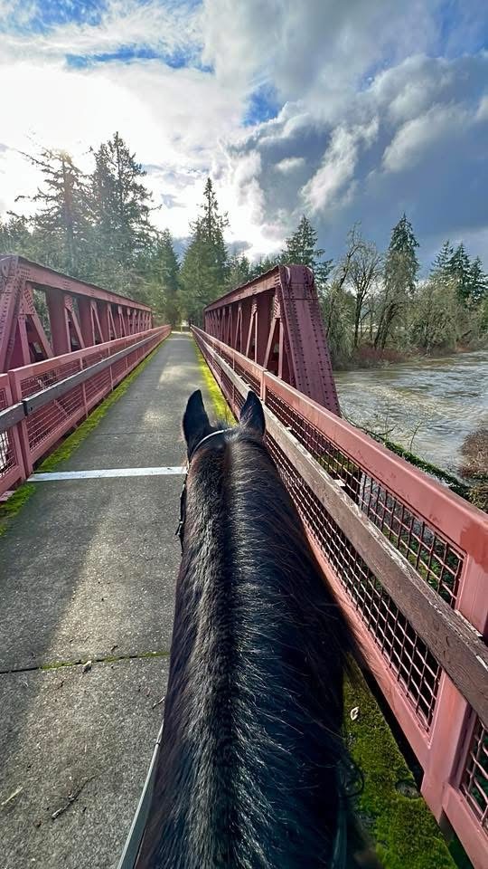 ↗ What does this mean? - Footing: Paved, some of the hills can be tricky for shod horses when wet.