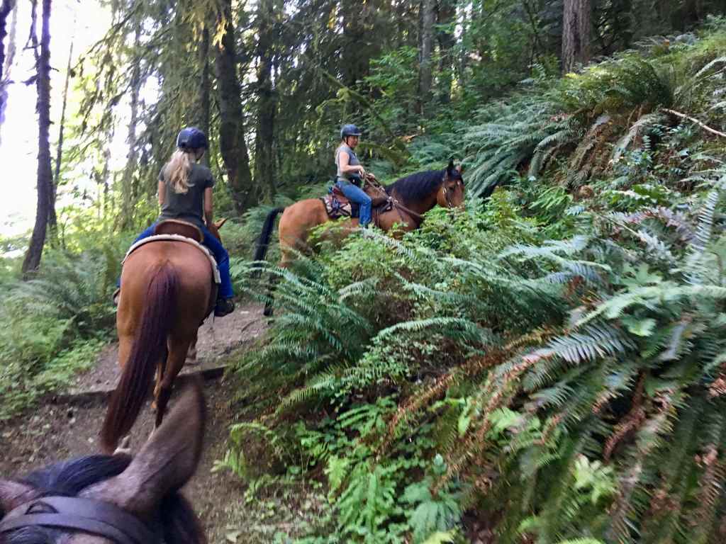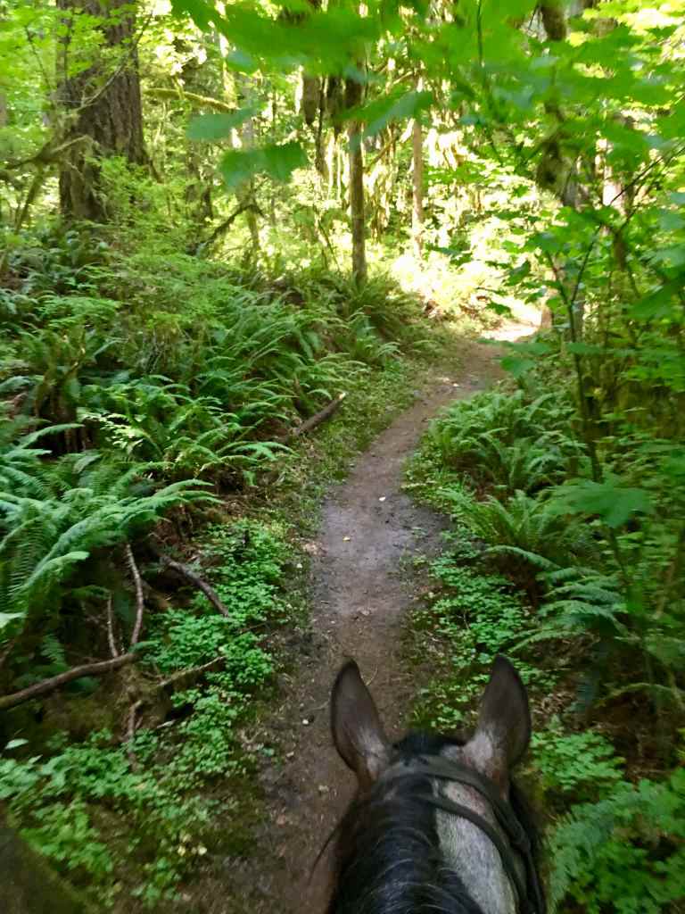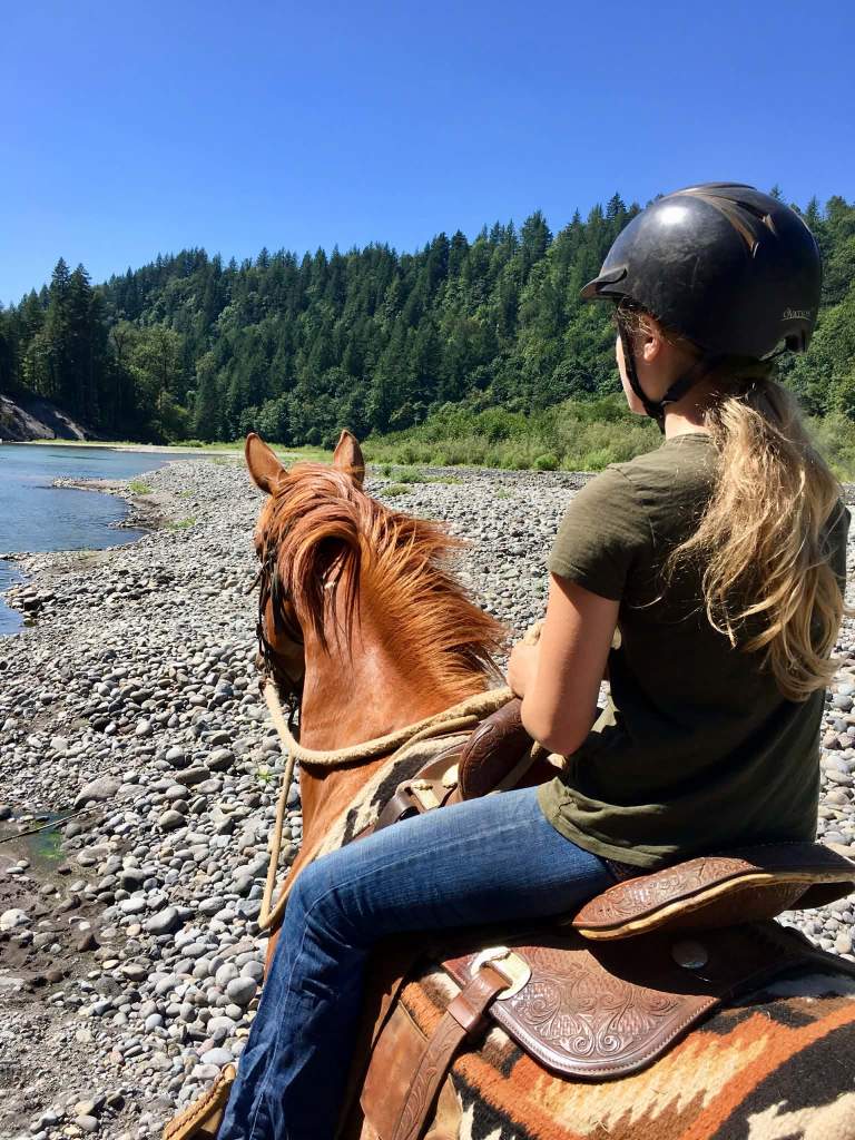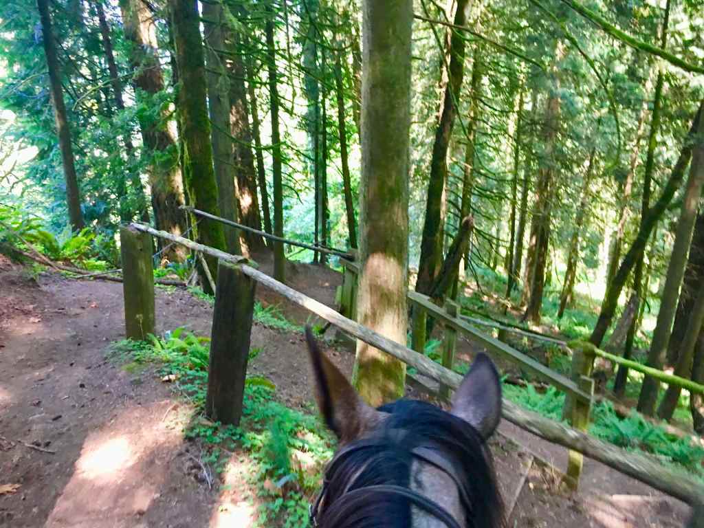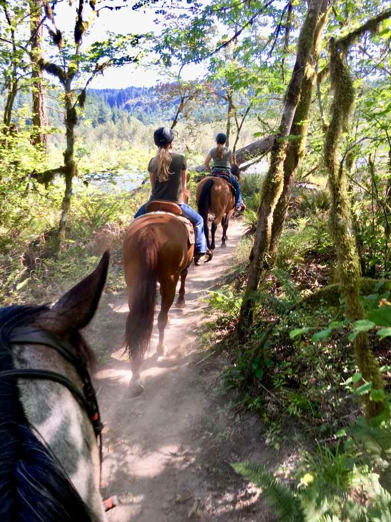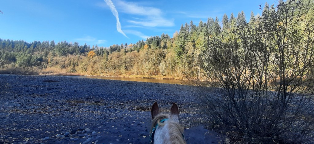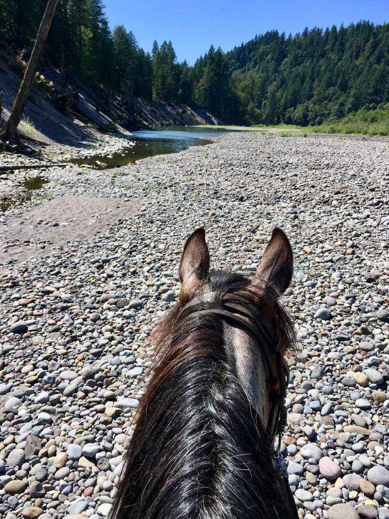 Trail Info: The trail starts at the equestrian trailhead at end of Homan Rd. It’s well-marked and easy to find. The trail descends to Elk Meadow. This trail has steep drop-offs and cliffs. The switchbacks are well-maintained and wide. There is a mile loop that goes around the meadow. One side of the trail is a cliff. It’s probably 300 ft or more to the bottom of the cliff. You will ride above eagle nests and soaring hawks. There is a trail that goes down to the river. The trail follows the road for a while, then cuts off to the right, down switchbacks and along a field. Then there are a few loop trails down by the river to explore.