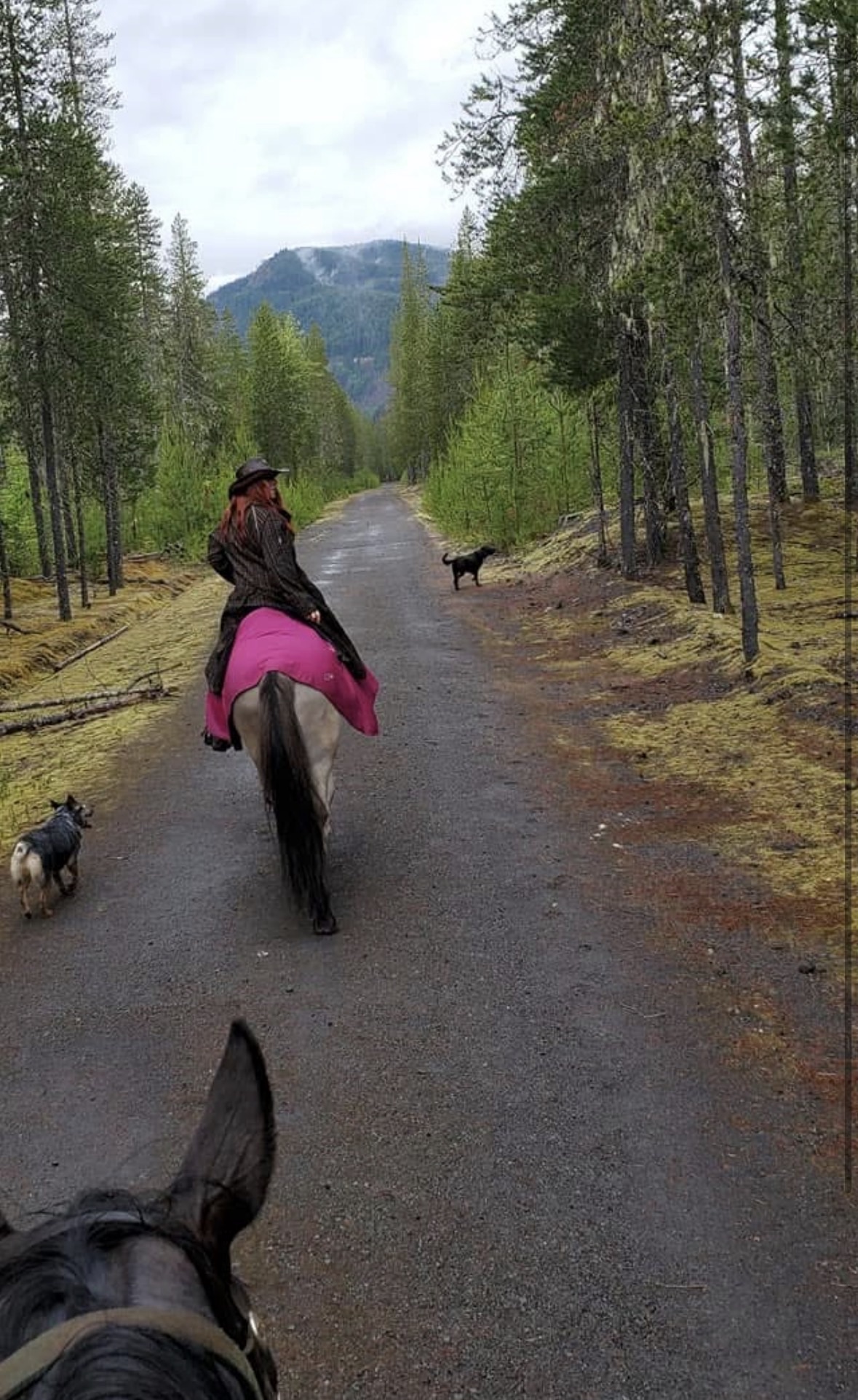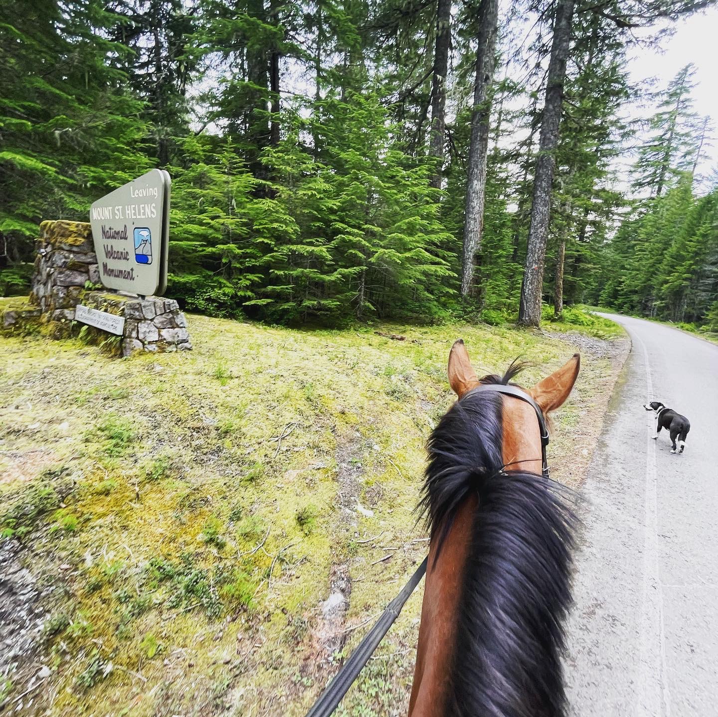 Kalama Falls Trail starts from Kalama Horse Camp in Southwest Washington’s Gifford Pinchot National Forest. Winding through the impressive old growth forest of the Mount St. Helens National Monument- this trail is a relaxing ride for most trail riders. The falls are not viewable from the trail so plan to tie up or have a friend stay with the horses while you scramble down for a view of the falls.