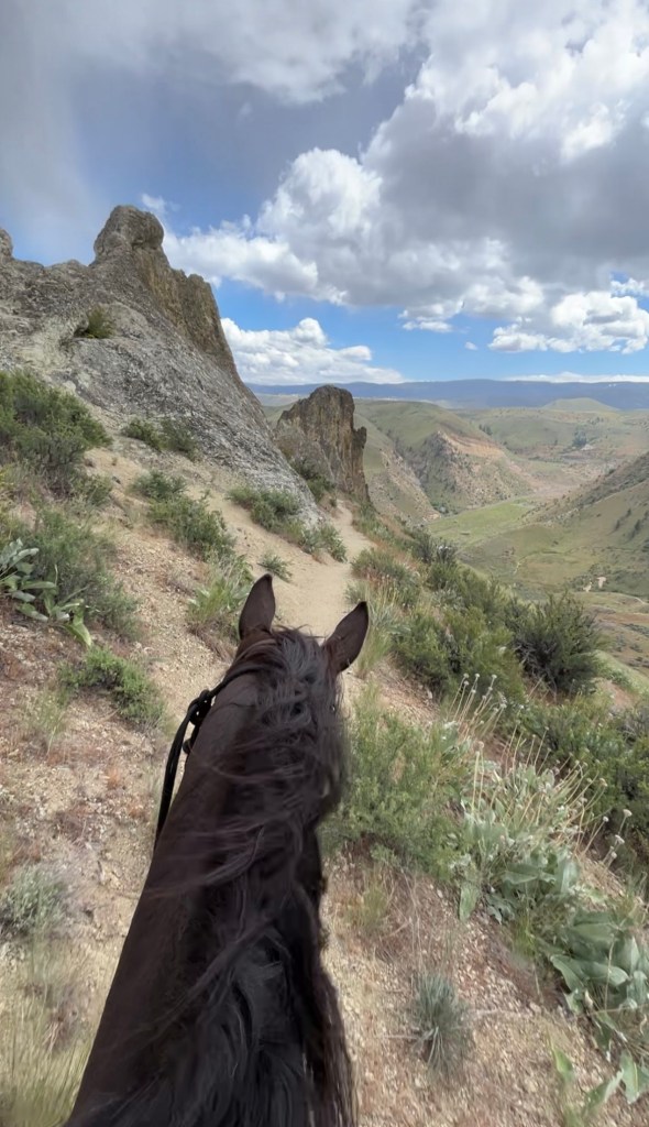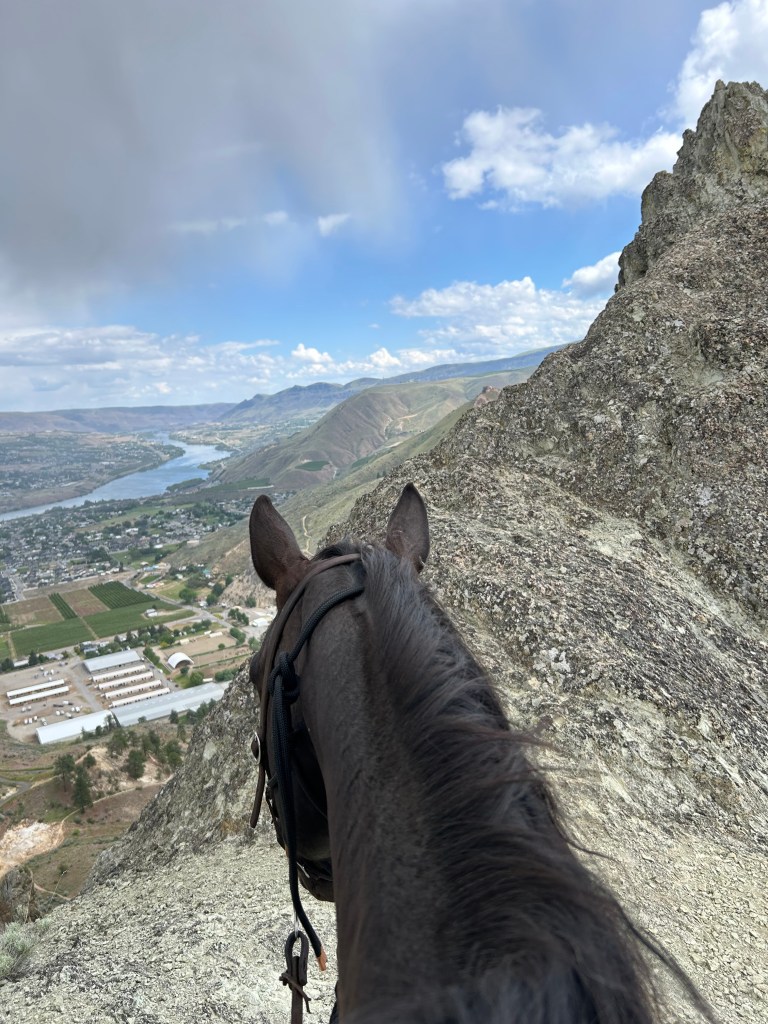 Real Life Notes from the Contributor: The whole trail has spectacular views and the view from the top is truly unforgettable. However, the climb to get there is a little harrowing due to steep slopes and loose gravel. I went the wrong way around the loop and had a really tough time coming back down. The trail is just one path until it splits and becomes a loop. When you get to the split, All Trails will tell you to go left, but with a horse, you need to go right. To the right, the grade rapidly reaches 28%, and you want to take that going uphill, not downhill. Especially when you factor in the loose gravel. This way, you will still have to deal with the -28% grade going back down the main part of the trail, but that part has better footing than the loop does, plus the steep grade doesn’t last as long. At the top, the loop connected to other trails which I did briefly explore and really enjoy. Once you’re up there, it’s not so scary, aside from the steep cliff.