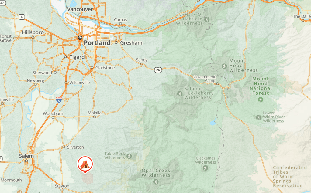 Directions: From Silverton, Oregon take OR-214 South for 15.7 miles. Turn left at park entrance and follow signs to the horse camp.