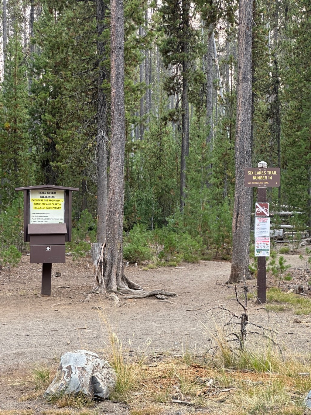 Lucky Lake Trailhead provides access to the Three Sisters Wilderness , Metolius-Windigo Trail (#99) and Senoj Lake Trail (#14.1). Parking: Large separate area for trailers. Possible Destinations: (mileage is one way) Facilities: No bathroom, no hitching posts, no corrals, no water. Permits: Day Use – Central Cascades Wilderness Permit – self Issue at trailhead.Overnight Use…